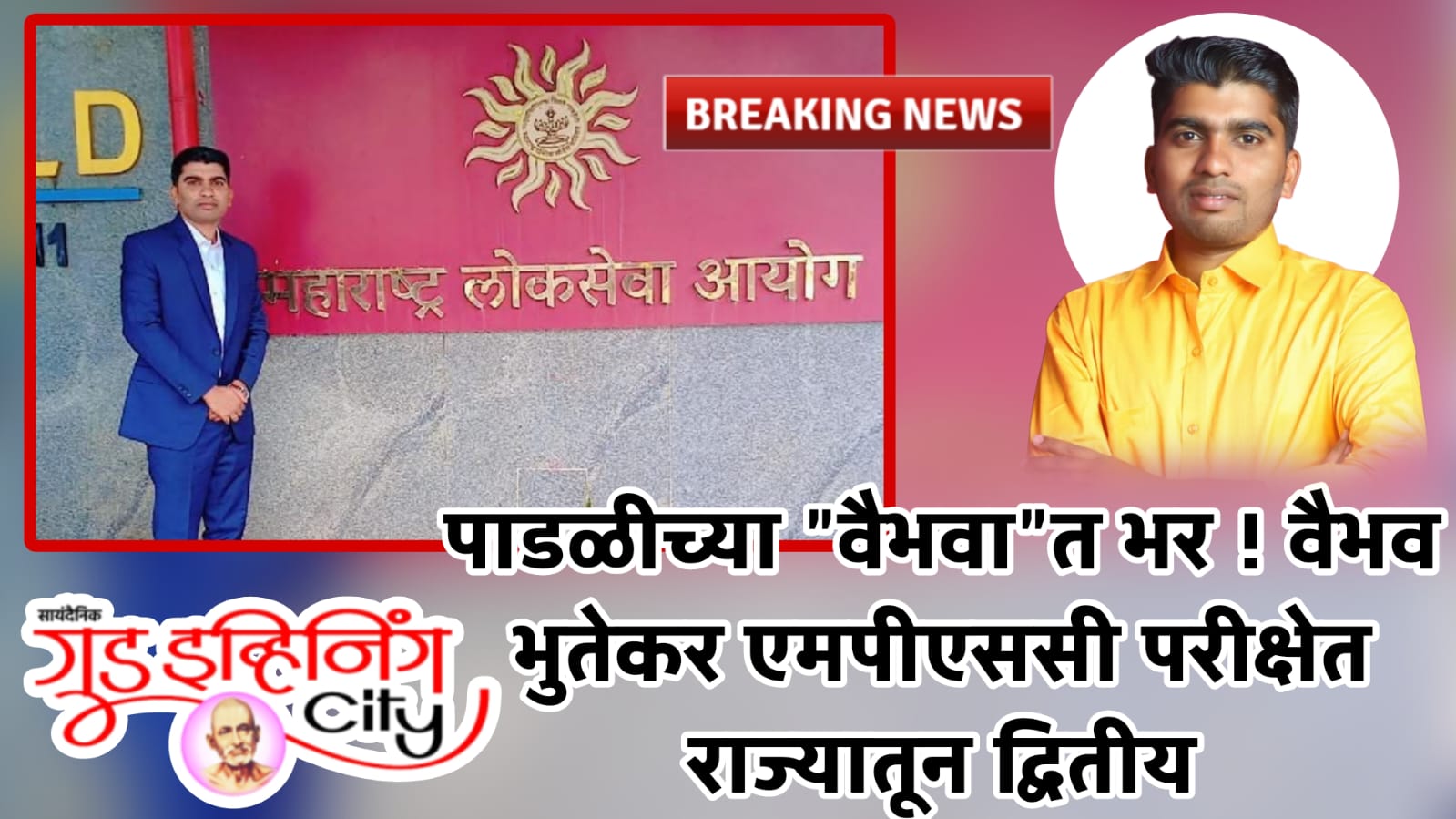 बुलढाणा, २५ ऑक्टोबर (गुड इव्हिनिंग सिटी) ः बुलढाणा तालुक्यातील पाडळी गावचे भुमिपुत्र वैभव बबनराव भुतेकर यांची महाराष्ट्र लोकसेवा आयोगाव्दारे घेण्यात आलेल्या परिक्षेव्दारे सहाय्यक आयुक्त समाजकल्याण वर्ग एक पदी निवड झाली आहे. त्यांचा राज्यातून व्दितीय क्रमांक आला आहे. गुड इव्हिनिंग सिटीने वैभव भुतेकर यांच्याशी संपर्क साधून त्यांचे अभिनंदन केले. त्यांनी गुड इव्हिनिंग सिटीला प्रतिक्रिया देतांना सांगितले की, प्राथमिक शिक्षण जिल्हा परिषद हायस्कूल पाडळी येथे झाले आहे. दहावी नंतरचे शिक्षण जिल्हा परिषद ज्यूनिअर कॉलेज पाडळी येथेच झाले. त्यानंतर कला शाखेच्या पदवीचे शिक्षण विदर्भ महाविद्यालय बुलढाणा येथे झाले. त्यानंतर महात्मा फुले समाजकार्य महाविद्यालय येथे समाजकार्य विषयातून एमएसडब्ल्यू ची पदव्युत्तर प्राप्त केली. वैभव यांनी स्पर्धा परिक्षेची तयारी आपल्या गावतच केली. कुठल्याही प्रकारचे क्लासेस त्यांनी लावले नाही. स्वतः मेहनतीवर आज त्यांनी हे यश संपादन केले आहे. वैभव भुतेकर यांची २०२१ मध्ये कर सहाय्यक पदी निवड झाली होती. त्यानंतर २०२१ मंत्रालय लिपिक, २०२५ अदिवासी आश्रमशाळेवर गृहपाल आणि २०२३ मध्ये त्यांची जालना जिल्ह्यातील वालसा खालसा येथील जिल्हा परिषद शाळेवर शिक्षक या पदावर निवड झाली होती. सध्या ते वालसा खालसा येथील शाळेवर कार्यरत आहे. काल २४ ऑक्टोबर रोजी एमएपएससी चा निकाल लागला त्यामध्ये त्यांची सहाय्यक आयुक्त समाजकल्याण पदी निवड झाली आहे. त्यांचा राज्यातून व्दितीय क्रमांक आला आहे. ते सध्या त्यांच्या पाडळी या गावी आहेत. त्यांच्या निवडी बद्दल त्यांचे सर्वच स्तरातून कौतुक होत आहे. ते आपल्या यशाचे श्रेय आई वडील व गुरूजनांना देतात.