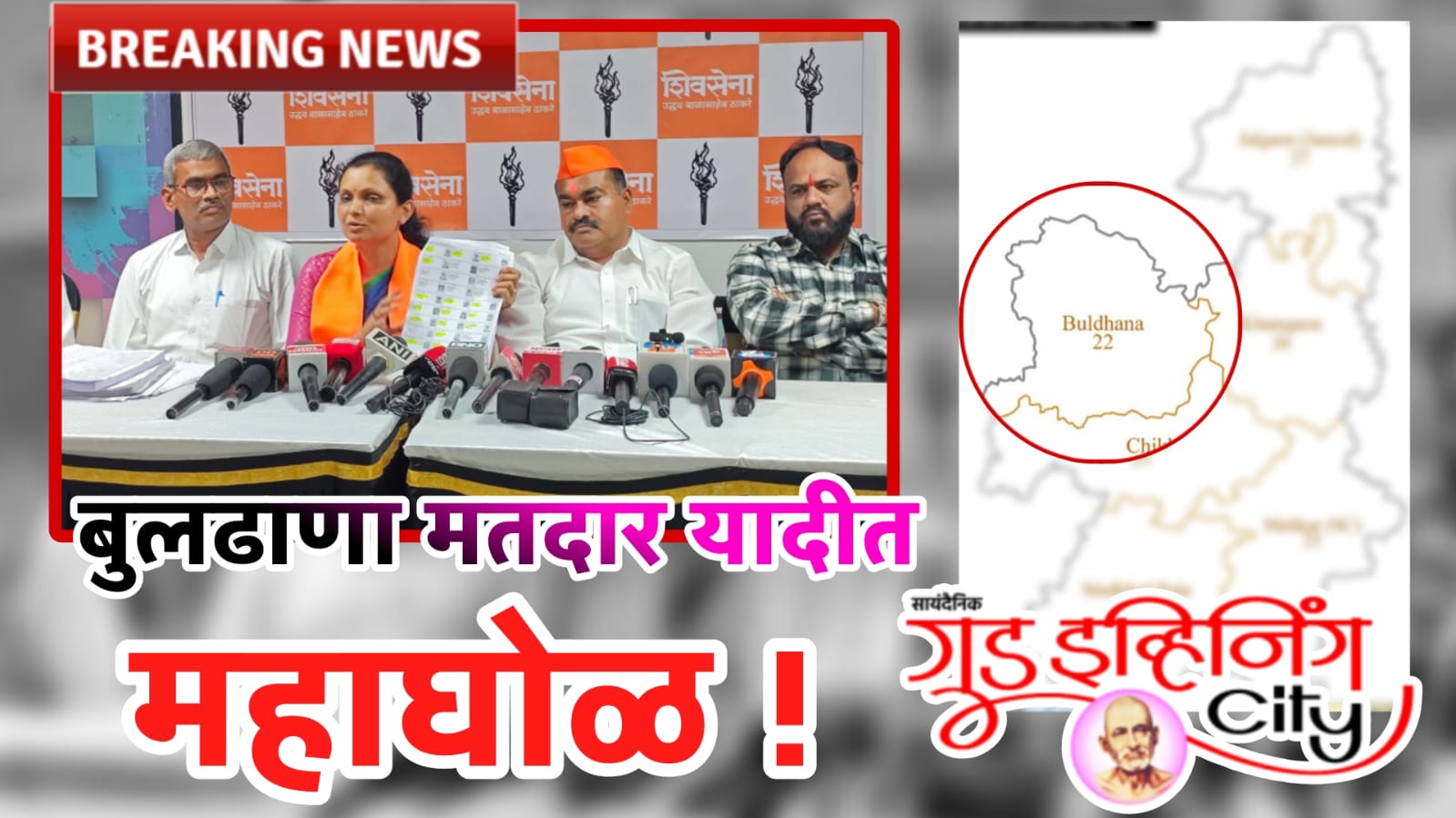 बुलढाणा, 30 ऑक्टोबर (गुड इव्हिनिंग सिटी) : विरोधी पक्षनेते राहुल गांधी यांनी समोर आणलेला “वोटचोरीचा” मुद्दा गंभीर असल्याचे शिवसेना उबाठाने अधोरेखित केले असून बुलढाणा विधानसभेत मतदार यादीचा महाघोळ पुराव्यांसह सादर करण्यात आला. शिवसेनेच्या राज्याच्या प्रवक्त्या ॲड.जयश्रीताई शेळके यांनी बुलढाण्यात 7500 पर्यंत दुबार मतदार असल्याचा आरोप केला आहे. तर 5291 मतदार मयत आहेत. मयतच्या नावावर मतदान झाले आहे. तर सागवन मधील एकाच घरात 126 लोक आणि ते सुद्धा विविध जाती धर्माचे राहत असल्याचे मतदार यादी सांगत आहे. असे विविध घोळ मतदार यादीत असल्यामुळे स्थानिक स्वराज्य संस्थांच्या येऊ घातलेल्या निवडणुकापूर्वी मतांचा घोळ थांबवावा आणि बोगस मतदार वगळावे, अशी मागणी जयश्रीताई सह जिल्हाप्रमुख जालिंधर बुधवत, डी. एस. लहाने यांनी केली आहे.