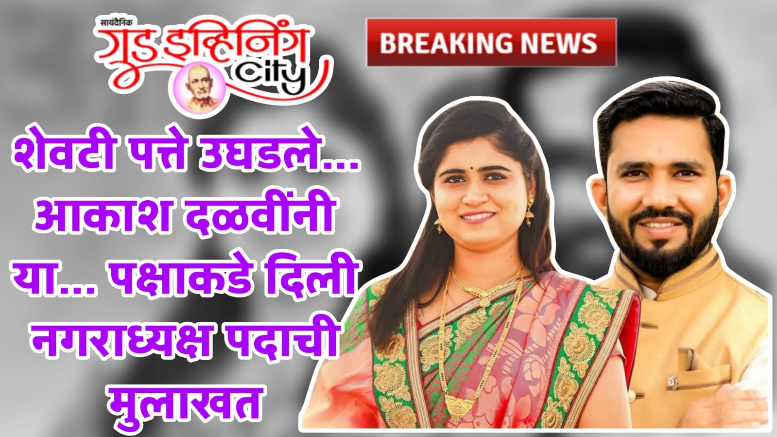 बुलढाणा, ७ नोव्हेंबर (गुड इव्हिनिंग सिटी) : आकाश दळवी आणि त्यांच्या पत्नी निलमताई दळवी यांनी भाजपची उमेदवारी मिळावी यासाठी मुलाखत दिली आहे. शिवसेनेतून राजीनामा दिल्यानंतर आकाश दळवी यांच्या राजकीय वाटचालीकडे बुलढाणेकरांचे लक्ष लागून होते. आकाश दळवी हे मागील निवडणुकीत कॉंग्रेस कडून लढले आणि नगरसेवक झाले होते. त्यांनंतर तब्बल चार वर्षांनी नगर पालिकेच्या निवडणूका होत आहे. आकाश दळवी हे स्वतः नगराध्यक्ष पदासाठी आग्रही होते. परंतु बुलढाण्याची जागा सर्वसाधारण महिलांसाठी सुटली आहे. त्यामुळे आकाश दळवी यांच्या पत्नी निलमताई दळवी यांना पुढे करत आज भाजपकडून लढण्यासाठी त्यांनी उमेदवारी मागितली आहे. आज गर्दे वाचनालय बुलढाणा येथे भाजपचे पक्ष निरीक्षक तथा मलकापूरचे आमदार चैनसुख संचेती हे इच्छुक उमेदवारांच्या मुलाखती घेत आहे. आकाश दळवी आणि त्यांच्या पत्नी निलमताई दळवी यांनी भाजपची उमेदवारी मिळावी यासाठी मुलाखती दिल्या आहेत.