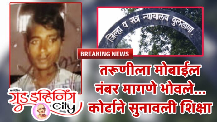 बुलढाणा, १३ नोव्हेंबर (गुड इव्हिनिंग सिटी) ः तरूणीला मोबाईल नंबर मागणार्या आरोपीला कोर्टाने शिक्षा सुनावली आहे. अमित खंडाळे मुख्य न्याय दंडाधिकारी बुलढाणा यांच्या न्यायालयाने शिक्षा ठोठावली आहे. बुलढाणा शहर पोलिस स्टेशनमध्ये देण्यात आलेल्या तक्रारीवरून आरोपी शेख रशीद शेख रफिक, रा. जोहर नगर याच्याविरुद्ध बुलढाणा शहर पोलीस स्टेशन येथे कलम ३२४ २९४ भा. दं. वि. नुसार गुन्हा दाखल झाला होता.