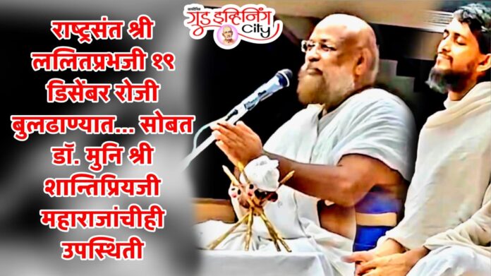 राष्ट्रसंत श्री ललितप्रभजी १९ डिसेंबर रोजी बुलढाण्यात… सोबत डॉ. मुनि श्री शान्तिप्रियजी महाराजांचीही उपस्थिती