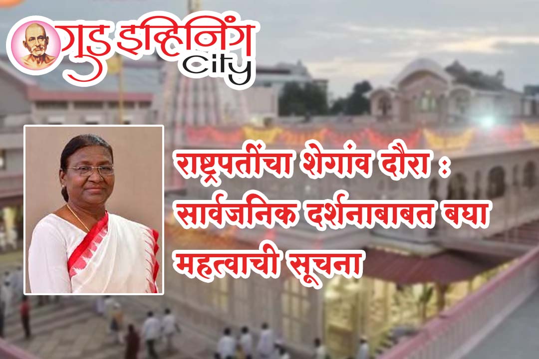 बुलढाणा 18 फेब्रुवारी (गुड इव्हिनिंग सिटी) : राष्ट्रपती द्रौपदी मुर्मू यांचा 23 ते 26 फेब्रुवारीदरम्यान शेगाव येथे अधिकृत दौरा निश्चित झाल्याची माहिती प्रशासनाकडून देण्यात आली आहे. दौऱ्याच्या पार्श्वभूमीवर शहरात कडक सुरक्षा व्यवस्था करण्यात येत असून 25 फेब्रुवारी रोजी राष्ट्रपती द्रौपदी मुर्मू आवारात उपस्थित असताना सार्वजनिक दर्शन तात्पुरते बंद ठेवण्यात येणार आहे.