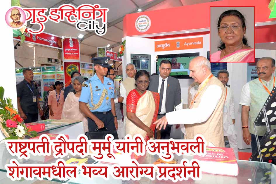 बुलढाणा, 25 फेब्रुवारी (गुड इव्हिनिंग सिटी) : भारताच्या महामहीम राष्ट्रपती द्रौपदी मुर्मू यांच्या शुभहस्ते आज श्रीक्षेत्र शेगाव येथे आयुष मंत्रालय, भारत सरकार व अखिल भारतीय आर्युवेद महासंमेलनाच्या संयुक्त विद्यमाने चार दिवसीय ‘राष्ट्रीय आरोग्य मेळावा २०२६’ चा अत्यंत उत्साहात शुभारंभ करण्यात आला. या ऐतिहासिक सोहळ्याप्रसंगी राष्ट्रपती महोदयांनी मेळाव्यातील भव्य आरोग्य प्रदर्शनीच्या विविध स्टॉल्सला भेट देऊन पाहणी केली. पारंपरिक भारतीय चिकित्सा पद्धती आणि आधुनिक आरोग्य सुविधांचा संगम असलेल्या या प्रदर्शनाने राष्ट्रपतींचे विशेष लक्ष वेधून घेतले.
