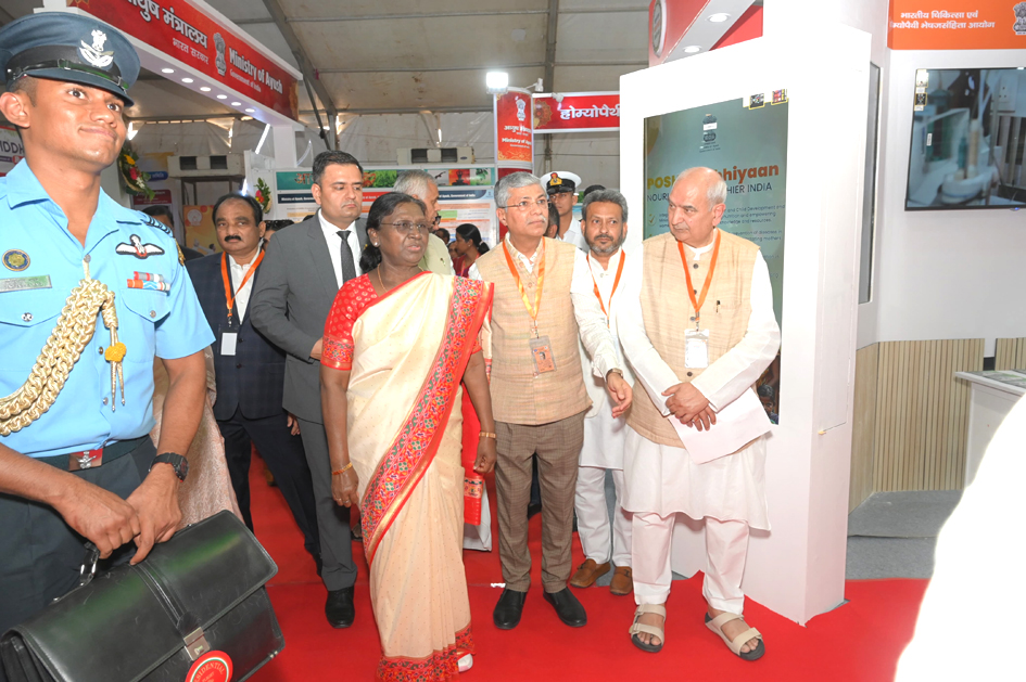 राष्ट्रपती महोदयांनी प्रदर्शनीमधील विविध पॅथींच्या स्टॉल्सना भेट देऊन तिथे उपलब्ध असलेल्या औषधी वनस्पती, उपचार पद्धती आणि रुग्ण तपासणी केंद्रांची सविस्तर माहिती घेतली. विशेषतः ग्रामीण भागातील नागरिकांसाठी आयुष मंत्रालयाने उपलब्ध करून दिलेल्या आरोग्य सुविधांची त्यांनी यावेळी प्रशंसा केली.