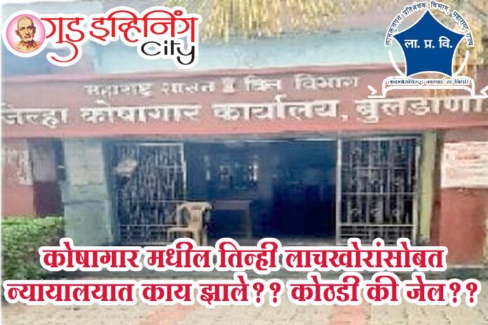 बुलढाणा लाच लुचपत प्रतिबंधक विभागाच्या पथकाने सरकारी पंचा समक्ष दिनांक 26 फेब्रुवारी 2026 रोजी पडताळणी केली यावेळी लाचेची मागणी केल्याचे निष्पन्न झाल्यानंतर दिनांक 27 फेब्रुवारी 2026 रोजी जिल्हा कोषागार कार्यालयात अप्पर कोषागार अधिकारी प्रवीण मोंढे, कनिष्ठ लेखापाल विनोद घट्टे व कनिष्ठ लिपिक जीवन काळे या तिघांनी एकत्रितपणे सेवानिवृत्त मृत पोलीस कर्मचारी यांच्या मुलाकडून पंधरा हजार रुपयाची लाच स्वीकारली याचवेळी लाच लुचपत प्रतिबंधक विभागाच्या बुलढाणा पथकाने या तिघांनाही लाच स्वीकारताना रंगेहात पकडले होते. या तिघां विरोधात भ्रष्टाचार प्रतिबंधक अधिनियम 1988 च्या विविध कलमा अंतर्गत बुलढाणा शहर पोलीस स्टेशनमध्ये गुन्हा दाखल करण्यात आला आहे. सदर कारवाई ही बुलढाणा लाच लुचपत प्रतिबंधक विभागाचे पोलीस उपअधीक्षक भागाजी चोरमले यांच्या नेतृत्वात यशस्वी करण्यात आली होती.