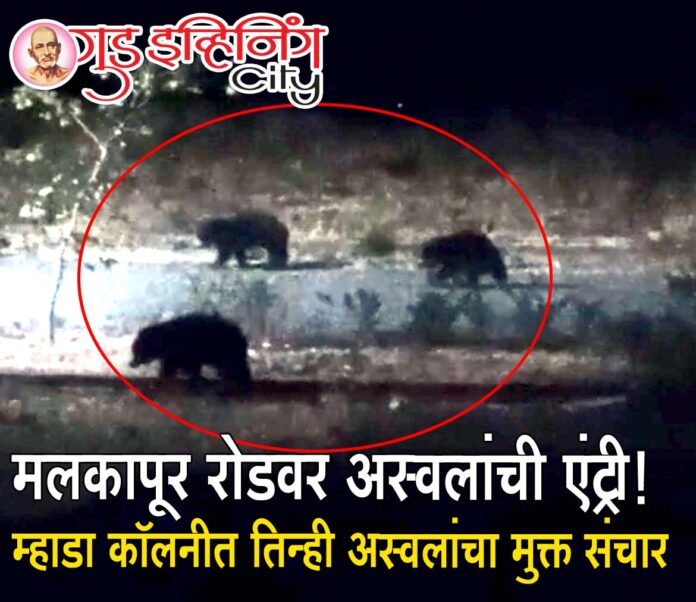गुड इव्हिनिंग सिटीला मिळालेल्या माहितीनुसार, उशिरा रात्रीच्या सुमारास एल-बिल्डिंगच्या मागील मोकळ्या जागेत तीन अस्वले फिरताना दिसली. काही रहिवाशांना बाहेर हालचाल जाणवल्यानंतर त्यांनी खिडकीतून पाहिले असता ही अस्वले परिसरात वावरताना आढळली. नागरिकांनी सुरक्षित अंतर राखत या घटनेचे चित्रीकरण केले.या अनपेक्षित घटनेमुळे म्हाडा कॉलनीतील रहिवाशांमध्ये भीतीचे वातावरण पसरले आहे. विशेषतः लहान मुले, महिला आणि ज्येष्ठ नागरिकांच्या सुरक्षेबाबत चिंता व्यक्त केली जात आहे. अनेकांनी रात्रीच्या वेळी घराबाहेर न पडण्याचा निर्णय घेतला असून सतर्कता वाढवण्यात आली आहे.दरम्यान, स्थानिकांनी तात्काळ वनविभागाला याची माहिती दिली असून संबंधित यंत्रणा सतर्क झाली आहे. प्राथमिक माहितीनुसार, अन्नाच्या शोधात ही अस्वले जवळच्या जंगल भागातून नागरी वसाहतीकडे आली असावीत, असा अंदाज व्यक्त केला जात आहे.वनविभागाने नागरिकांना आवाहन केले आहे की, अशा परिस्थितीत घाबरून न जाता सावधगिरी बाळगावी, रात्रीच्या वेळी अनावश्यक बाहेर पडू नये आणि वन्य प्राण्यांपासून सुरक्षित अंतर राखावे. तसेच, अशा घटना आढळल्यास तात्काळ प्रशासनाशी संपर्क साधावा.