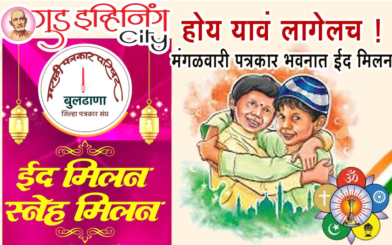 पत्रकार हे नेहमीच समाजाच्या हितासाठी रात्रंदिवस आपले काम करीत असतात. समाजा समाजात बंधूभाव नांदला पाहिजे यासाठी आपल्या लेखणीतून नेहमीच व्यक्त होतात. देशातील बदलत्या सामाजिक परिस्थितीला निव्वळ या देशातील काही मूठभर समाज विघातक प्रवृत्ती कारणीभूत असून या सर्व गोष्टींना विरोध करणे हे प्रत्येक भारतीय नगरिकाचे कर्तव्य नाही तर जबाबदारी आहे. मागील वर्षीसुध्दा जिल्हा पत्रकार संघाच्या वतीने ईद मिलन कार्यक्रमाचे आयोजन करण्यात आले होते. या कार्यक्रमाला बुलढाणेकरांचा मोठा प्रतिसाद मिळाला होता. बुलढाणा ‘हे शहर है अमन का और मोहब्बत करने वालो का’ त्यामुळे सर्वांमध्ये प्रेमाची व सलोक्याची भावना निर्माण व्हावी या उदात्त हेतूने बुलढाणा जिल्हा पत्रकार संघाच्या वतीने ईद मिलन या कार्यक्रमाचे आयोजन करण्यत आले आहे. मंगळवार, 31 मार्च रोजी सायंकाळी 6 वाजता पत्रकार भवन, सैनिकी मंगलकार्यालयाजवळ बुलढाणा येथे आयोजित करण्यात आला आहे. तरी या कार्यक्रमाला उपस्थित रहावे असे आवाहन जिल्हा पत्रकार संघाच्या वतीने करण्यात आले आहे.
