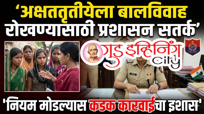 बुलढाणा १६ एप्रिल ( गुड इव्हीनींग सिटी ): अक्षयतृतीयेचा मुहूर्त अत्यंत शुभ मानला जात असला तरी या दिवशी छुप्या मार्गाने बालविवाह होण्याची शक्यता लक्षात घेऊन प्रशासनाने सतर्कता वाढविली आहे. ग्रामीण व शहरी भागात १९ एप्रिल रोजी होणाऱ्या विवाह सोहळ्यांमध्ये बालविवाह होणार नाही, याची विशेष दक्षता घेण्याचे आवाहन जिल्हा महिला व बाल विकास अधिकारी अमोल डिघुळे यांनी केले आहे.